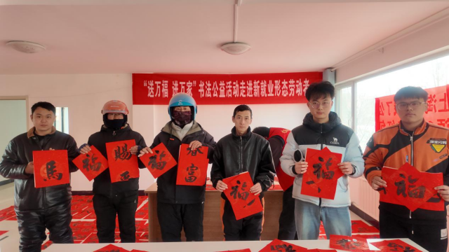 “平时忙着接单配送,没想到工会把福气直接送到了我们身边,这手写的福字比买的更有分量,贴在家里,年味儿一下子就来了。”现场领取到心仪“福”字和春联的外卖小哥刘伟笑道。