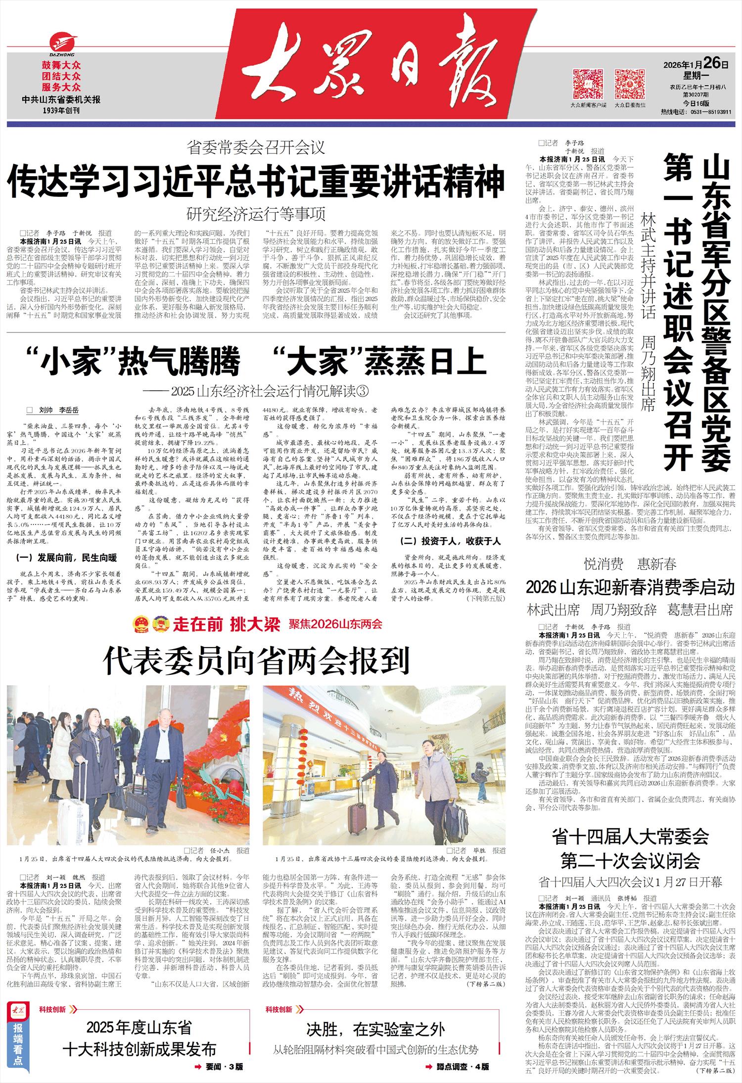 打开2025年山东成绩单,物阜民丰绘就最厚重的底色。实施20项重点民生实事,城镇新增就业124.9万人,居民人均可支配收入44180元、同比名义增长5.0%……一项项民生数据,让10万亿地区生产总值背后发展与民生的同频共振清晰呈现。(一)发展向前,民生向暖