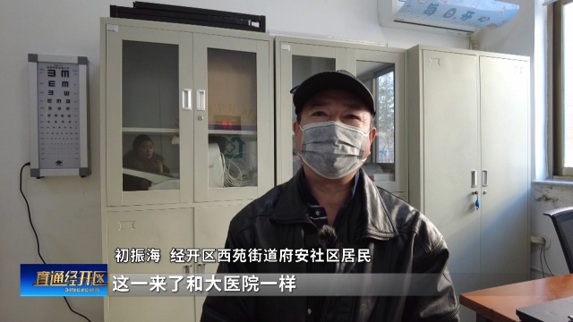 经区西苑街道府安社区居民初振海说:“这一来了和大医院一样,很方便,不用去大医院跑得远,麻烦,真可以说是足不出户,上这来这些医生态度也真好。”