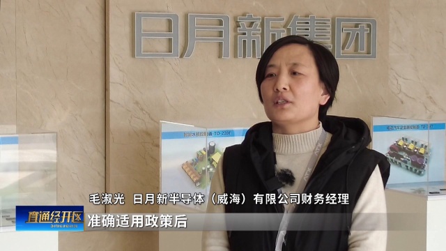 日月新半导体(威海)有限公司财务经理毛淑光说:“税务部门的辅导让我们对政策有了更清晰的认识,我们还惊喜地发现,准确适用政策后,每年企业还可减少相关税费成本达240万元。我们企业会持续加大研发投入,在封装测试行业等领域持续突破,在海外市场上走得更稳健、更有力。”