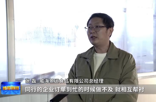 威海蒸运食品有限公司总经理张磊表示,同行的企业订单到忙的时候做不及,就相互帮衬,有一些单位在生产旺季的时候,采购的原材料用不了,就来帮忙消化,标准都是统一的,这样能避免原材料的浪费。