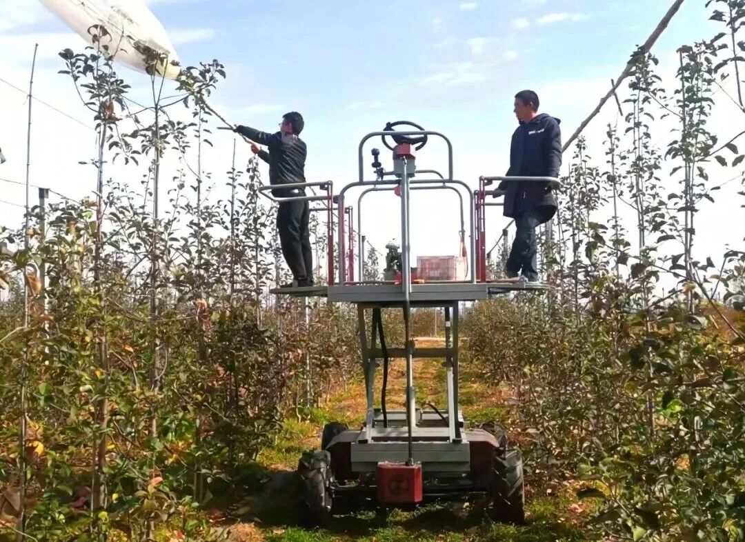 1月20日,一台为挪威客户定制的山地苹果采摘平台在威海中颐现代农装科技有限公司完成调试。这款采用全地形履带底盘的设备,可稳定攀爬35度以上的陡坡,解决了北欧丘陵果园的采收难题。