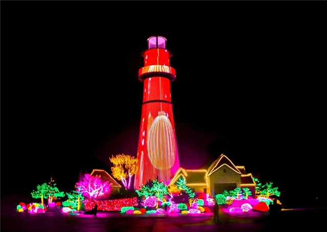市人民广场彩灯布设亮点纷呈,成为本次亮化的核心看点。广场中央将打造巨型中国结灯光装置,通过绯红丝线经纬交错,既勾勒出吉祥喜庆的新春氛围,更象征着各民族情谊紧密相连。市人民广场跌水池区域的光艺设施设计独具匠心,采用阵列的圆环向北依次延伸,形成极具震撼力的视觉透视效果。广场草坪上,将摆放一幅幅展示威海城市建设成果、特色人文景观的灯绘作品。灯绘作品错落摆放,创作中借鉴威海剪纸简洁流畅的构图手法与鲜明的寓意表达,同时融入3D打印、AI图像处理等新型技术,让灯绘细节更细腻、画面更生动,尽显威海城市魅力。