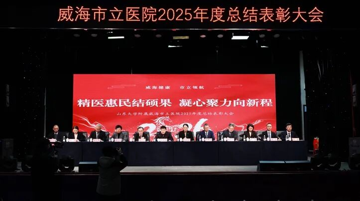 2026年1月31日上午,山东大学附属威海市立医院2025年度总结表彰大会隆重召开。会议全面回顾过去一年医院改革发展的奋斗历程与丰硕成果,系统部署2026年重点工作任务,凝聚起全院上下共谋高质量发展的磅礴力量。院领导班子全体成员、各临床医技科室及职能部门负责人、护士长代表、职工代表等700余人参加会议,会议由党委副书记褚衍六同志主持。