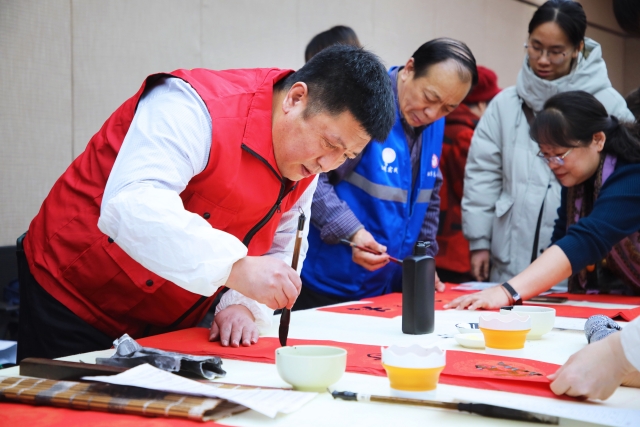 活动现场,书法爱好者们凝神聚气,铺展红纸,蘸饱墨汁,随即笔走龙蛇。压纸、蘸墨、起笔、收笔,一系列动作如行云流水。笔锋起落转合之间,一个个或苍劲有力或秀逸灵动的“福”字跃然纸上,一副副寓意吉祥、寄托美好期盼的春联顷刻书就,宛如一片红色的祝福海洋。活动不仅弘扬了博大精深的中华优秀传统文化,更致力于满足职工群众日益增长的精神文化需求,有力营造出隆重热烈、欢乐祥和、积极向上的节日氛围。