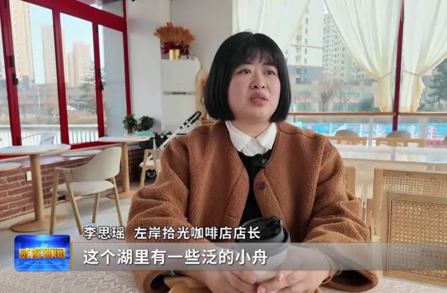 左岸拾光咖啡店店长李思瑶表示,这个湖里有一些泛的小舟,可以拿着咖啡,坐在船上,在周末的时候去放松一下,体验一下亲子的娱乐时光。