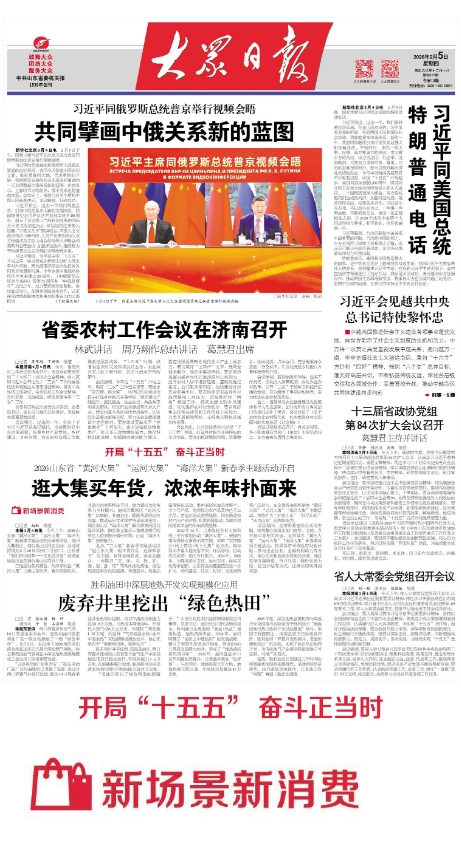 本报2月4日讯 今天上午,2026山东省“黄河大集”“运河大集”“海洋大集”新春季主题活动在菏泽东明县、德州天衢新区、烟台莱山区同步启动,活动将持续到3月20日(农历二月初二)。山东省“我们的中国梦——文化进万家”活动首场演出也在烟台莱山区同步开展。