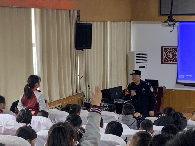 为提升宣传实效,活动还设置互动问答环节。民警就铁路安全常识、应急处置流程等问题进行现场提问,学生们积极响应、认真作答,现场学习氛围浓厚。此外,民警还带领全体学生集体朗读铁路安全口诀,并发放铁路安全宣传手册,鼓励学生将所学知识传递给家人,形成“教育一名学生、带动一个家庭、影响整个社会”的宣传效果。