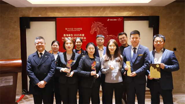 2025年度香海豪生喜获抖音颁发的4项全国及地区大奖,分别是抖音本地生活2025年挚友酒店品牌、职人荣耀季加冕职人、职人荣耀季加冕商家、抖音本地生活山东区域人气口碑标杆。