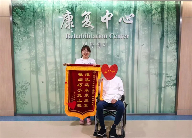 临行前,约翰送来了精心准备的感谢信和锦旗。锦旗上“澳客远来求康复,艳娜巧手复上肢”的赞美语句,道出了他内心最真挚的感激。为保证治疗的连续性,约翰回到澳大利亚后,康复团队还将与他保持密切联系,持续跟进病情进展。