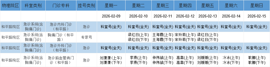 和平路院区急诊系统门诊排班表