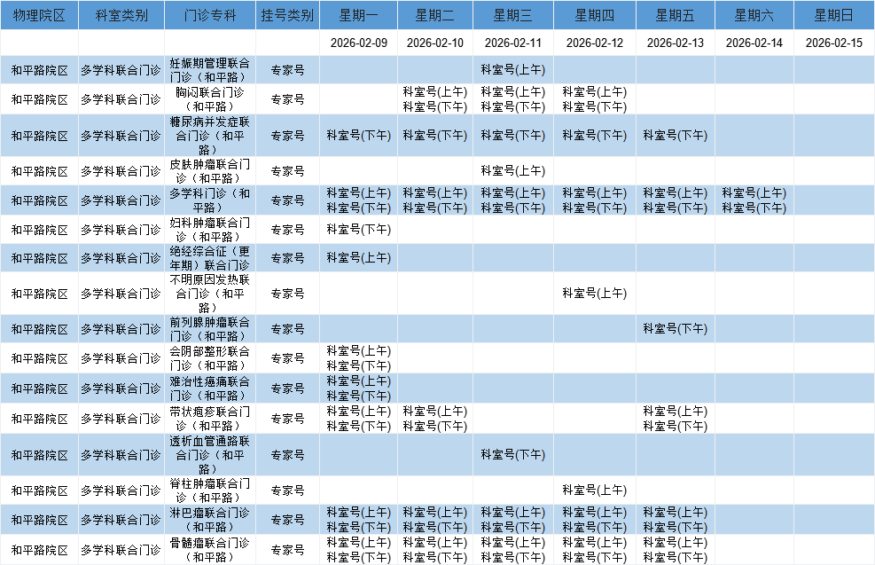 和平路院区多学科联合门诊排班表