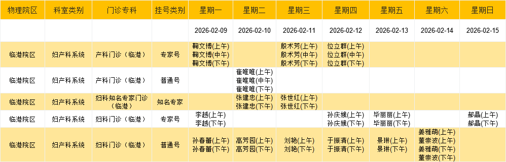 临港院区妇产科门诊排班表