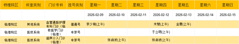 临港院区内科门诊排班表