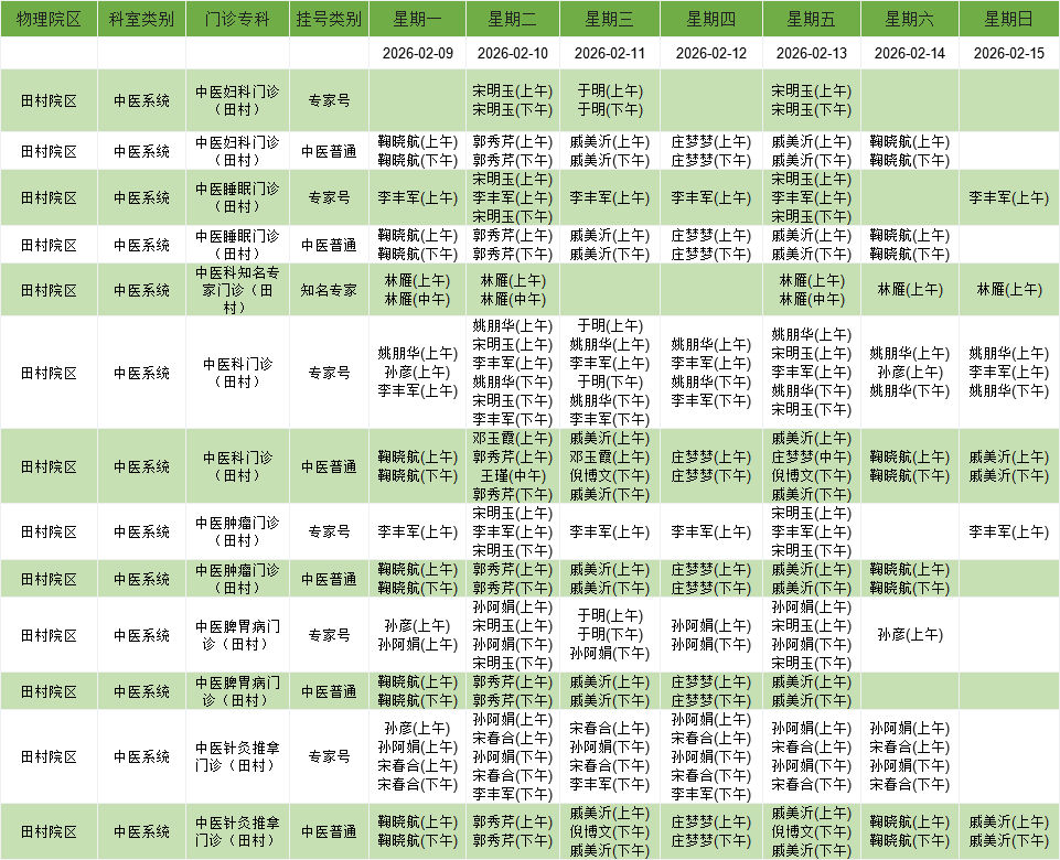 中医系统门诊排班表