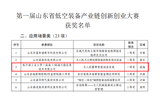 作为环翠区重点扶持的科技企业,威海天航自2018年成立以来,在环翠区政府与哈尔滨工业大学(威海)的联合扶持下,已构建起“核心技术研发—产品生产制造—场景应用落地—专业人才培训”的全链条服务体系,拥有专属飞行测试空域及相关经营资质,为技术创新与实战应用提供了坚实保障。此次获奖,既是企业自身实力的彰显,也离不开环翠区对低空经济、科技创新的持续布局与政策扶持。