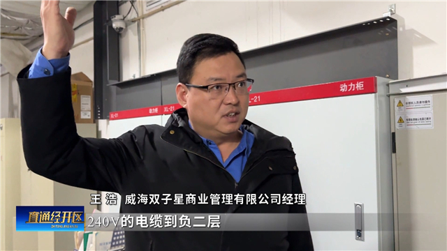 威海双子星商业管理有限公司经理王浩说:“这次统一配备了电缆,都也比较粗。在这边加了柜子,240V的电缆到负二层,然后再分到用户的手里。统一采购的标准化的电缆,避免了商户电缆采购的各种五花八门的,危险系数比较高。”