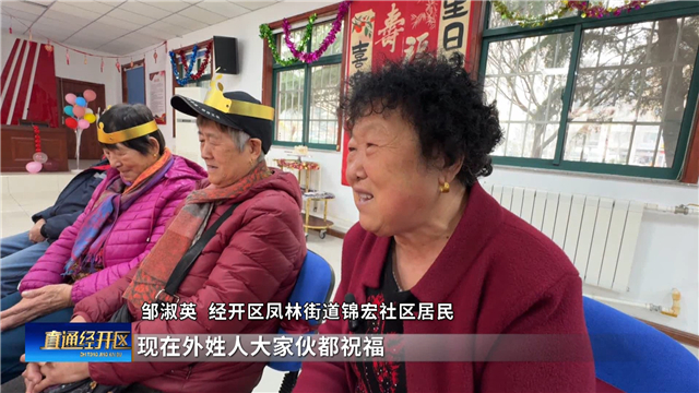 经开区凤林街道锦宏社区居民邹淑英说:“气氛也好,在家孩子祝福,现在外姓人大家伙都祝福,心里太高兴了。”