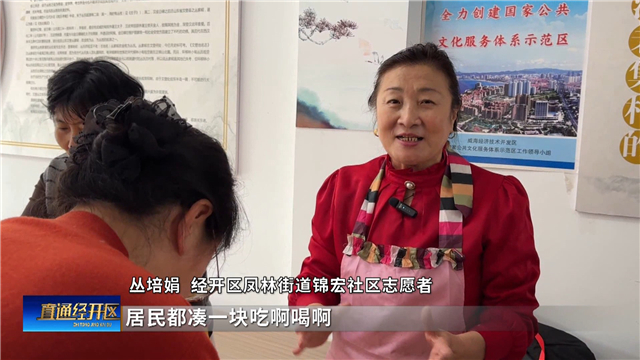 经开区凤林街道锦宏社区志愿者丛培娟说:“居民都凑一块吃啊喝啊,还能拉拉家常。我们虽然做得累点,但是心情也挺好的。”