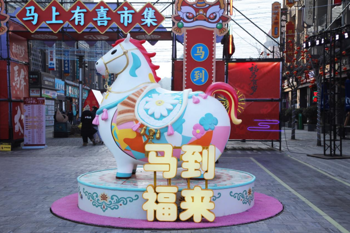 马年剪纸,“立马抱福”彩绘,跃马迎春糖画,马年小挂件……在属相街“马上有喜”市集上,40个主题摊位汇聚了非遗手作、地方特产、文创产品和传统小吃,构成了一个流动的美学长廊。