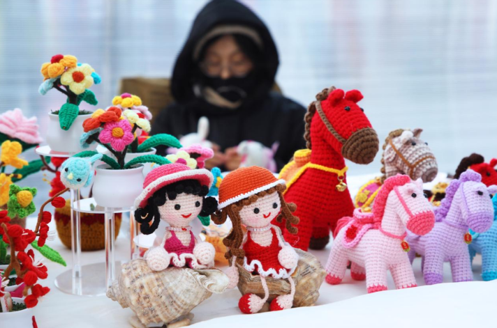 摊位上,俏皮灵动的小马扭扭棒、寓意吉祥的“马上杏福”手提包、憨态可掬的针织生肖玩偶等文化创意产品琳琅满目,游客们兴致盎然地驻足观赏、精心挑选,将这份独具匠心的新年祝福带回家中。