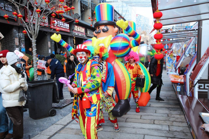 伴随着一阵阵欢乐的笑声,在市集东端的舞台上,正进行着精彩的演出,小丑巡演、现场魔术引发观众阵阵喝彩,春节期间,更多精彩表演将轮番登场——夜光舞狮、火壶表演、川剧变脸、天女散花等近30场特色活动,为市民游客呈上精彩纷呈的文化盛宴。
