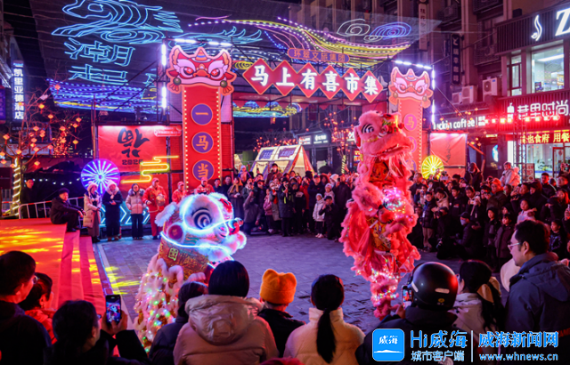 Hi威海客户端讯 2月10日,“马上有喜”市集在威海中心城区属相街热闹开市。本次市集为期22天,将持续至3月3日,以丰富的民俗表演与特色市集,为市民游客打造沉浸式新春游玩体验。