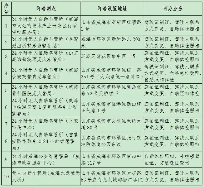 环翠区大队:环翠区海滨中路19号,电话:5276032;