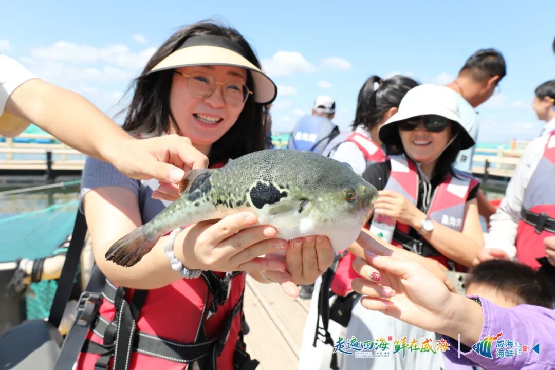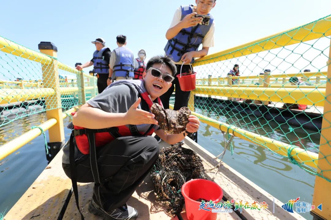 在桑沟湾国家级海洋牧场,网络达人“听海看海啊”深度体验了逗河豚、钓鱼、现捞海鲜等互动项目,亲身感受桑沟湾将传统渔业与现代旅游创新融合的活力。在贝类采摘区收获满满的她兴奋地表示:“我要让更多人知道这里,有这么多好吃的美食和好玩的项目。”