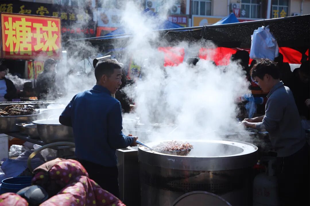 热气腾腾的羊汤、刚出炉的油炸糕、香气扑鼻的肉夹馍……现炸的、现卤的、现蒸的、现包的,大集上全是“现”字当头的吃食。