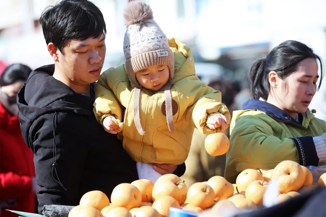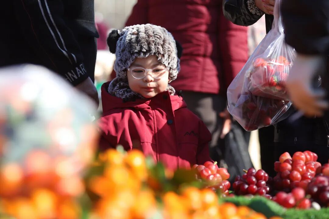 新鲜的蔬菜、饱满的瓜果、香甜的点心,被一一收入囊中,一家人提着沉甸甸的年货,满载着年味与幸福踏上归途。