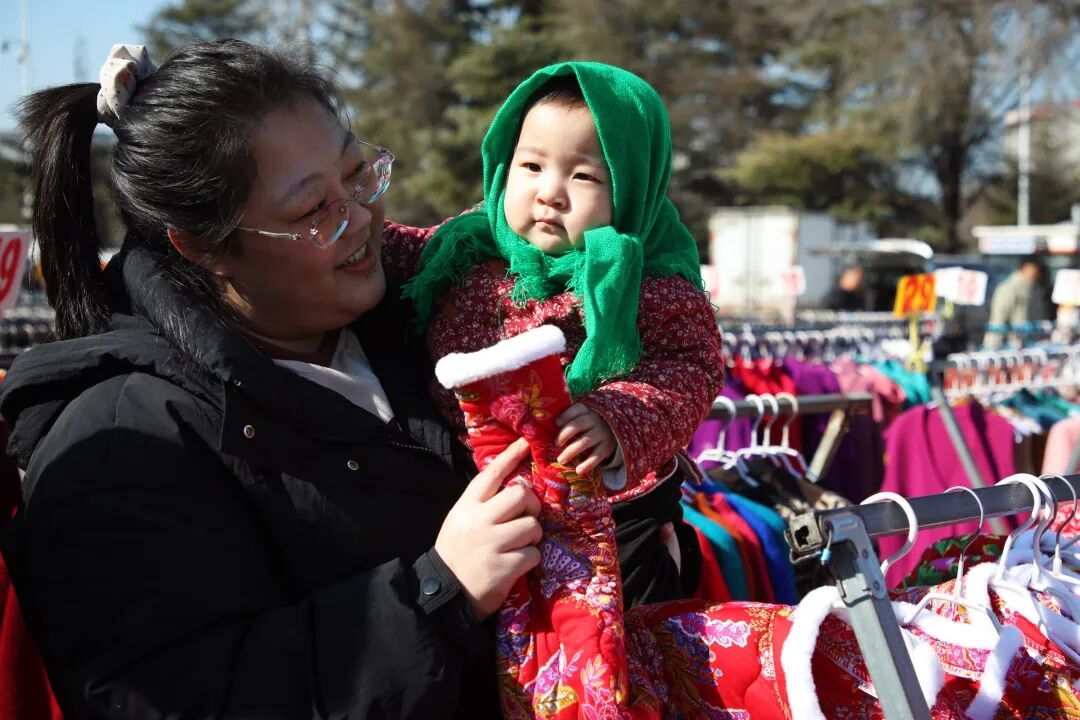 偶尔,还能遇到穿着红色花棉袄的老款小孩,年纪尚小,安安静静地被家人护在身边,懵懂地看着眼前热闹的一切。