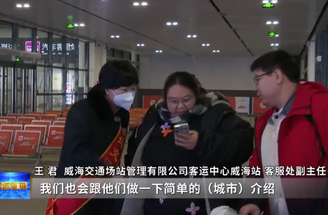 威海交通场站管理有限公司客运中心威海站客服处副主任王君说,这个地方是威海站的出站口,也是旅客到达威海以后的第一个落脚点,旅客如果不知道在哪里换乘,这边做出一定的指引,如果有旅客拿的东西比较多或者行动不方便,需要的话,这边提供一定的帮助。