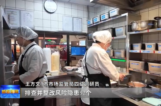王方文说,目前,全市共检查食品经营主体546家,排查并整改风险隐患52个。节日期间,他们将持续加强应急值守和市场巡查,畅通投诉举报渠道,对违法行为第一时间进行查处,全力守护群众食品消费安全。(全媒体新闻中心记者 姜正馨)