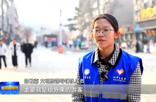 文明旅游导讲队成员吕敏嘉说,从初三的时候就来这里当志愿者,主要就是给外来的游客去讲述一些威海的历史以及文化,让外地游客喜欢上威海,更好地了解威海。