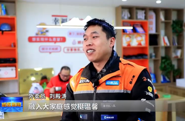 外卖员刘殿涛说,融入大家庭感觉挺温馨,还能跟同事们促进感情。