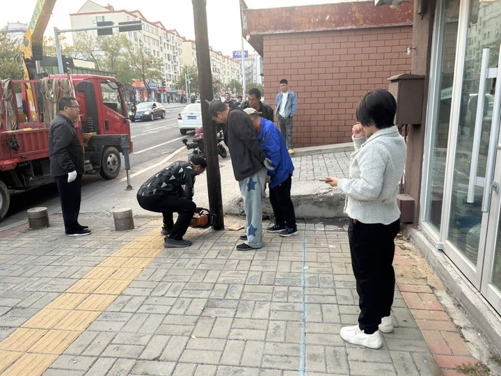 施工当天,社区网格员引导居民绕行。经过四个多小时的紧张作业,9棵腐朽木桩被成功移除,主干道恢复了畅通安全的环境。