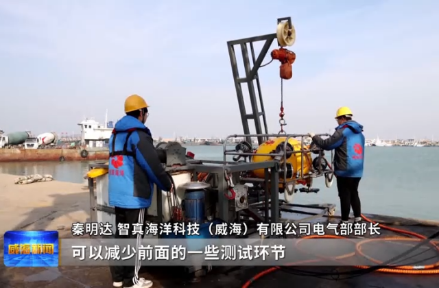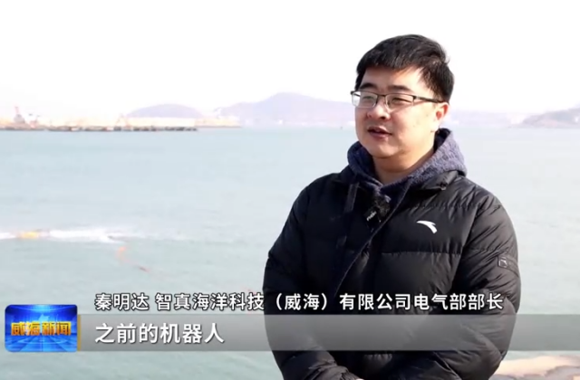 智真海洋科技(威海)有限公司电气部部长秦明达说,现在正在逐步提升机器人的动力,之前的机器人可能只能在一节水流下的海况进行作业,经过研究和提升,现在能在两节的情况下稳步作业,未来的目标是能在3节或者4节的海况下稳定的作业,保证它的作业时长。