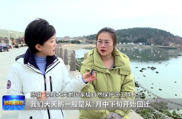 荣成大天鹅国家级自然保护区工作人员陈璐:我们大天鹅一般是从2月中下旬开始回迁,到三月中下旬就迁飞完毕了。