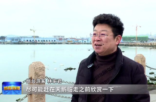 烟台游客林家君说,前天听朋友讲天鹅要飞走了,尽可能赶在天鹅临走之前欣赏一下。威海这个环境特别好,天鹅每年非常多,而且这么近距离观察特别好。