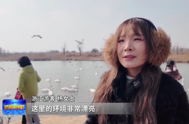 浙江游客杨女士说,这里的环境非常漂亮,现在这些天鹅在这里练飞,飞起来的时候姿态很优美,湖面上波光粼粼,她觉得来这里非常值得。