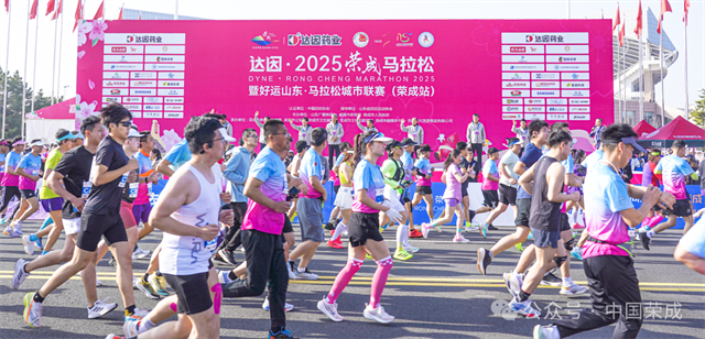 4月的荣成,樱桃花海缀满阡陌,海风裹挟花香拂面,赛道串联起樱花湖体育公园、滨海公园、成山大道等城市地标,一侧是碧波万顷的壮阔海景,另一侧是错落有致的城市风光,让每一步奔跑,都能沉浸式感受“山海相依、城景相融”的独特韵味,让运动的激情与春日的浪漫撞个满怀。