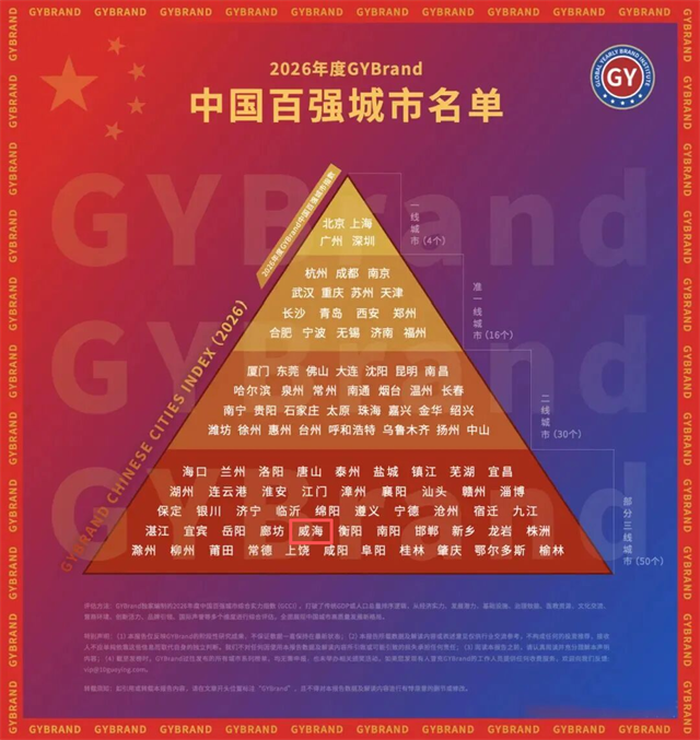 近日,城市指数研究机构GYBrand独家编制的《2026年度中国百强城市指数》正式发布,威海上榜,位列三线城市行列。