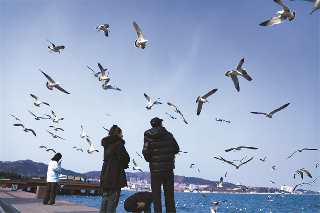 留住这些“精灵”的,还有威海人那份细腻的温情。为了尽好“地主之谊”,成山头省级自然保护区联合派出所、附近村子组成“海驴岛党员先锋服务队”,常态化开展生态治理修复、海域清洁等活动;半月湾景区则组织志愿者,引导游客科学投喂海鸥。