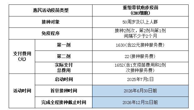 带状疱疹疫苗惠民政策详情