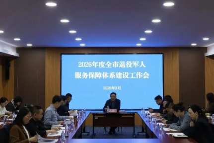3月13日,全市退役军人服务保障体系工作会议召开。会议以习近平新时代中国特色社会主义思想为指导,全面贯彻党的二十大和二十届历次全会精神,深入学习贯彻习近平总书记关于退役军人工作的重要论述和重要指示批示精神,认真落实全省退役军人服务中心主任会议和全市退役军人事务局长会议部署,总结2025年和“十四五”时期工作,谋划“十五五”时期目标任务,安排2026年重点工作,聚力推进全市退役军人服务保障工作高质量发展。