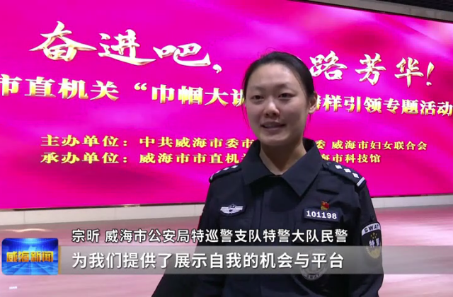 威海市公安局特巡警支队特警大队民警宗昕说,为她们提供了展示自我的机会与平台,通过聆听各行各业女干部在平凡岗位上创造的不平凡,她深受激励,将继续立足本职岗位,贡献巾帼力量。(全媒体新闻中心记者 姜正馨)