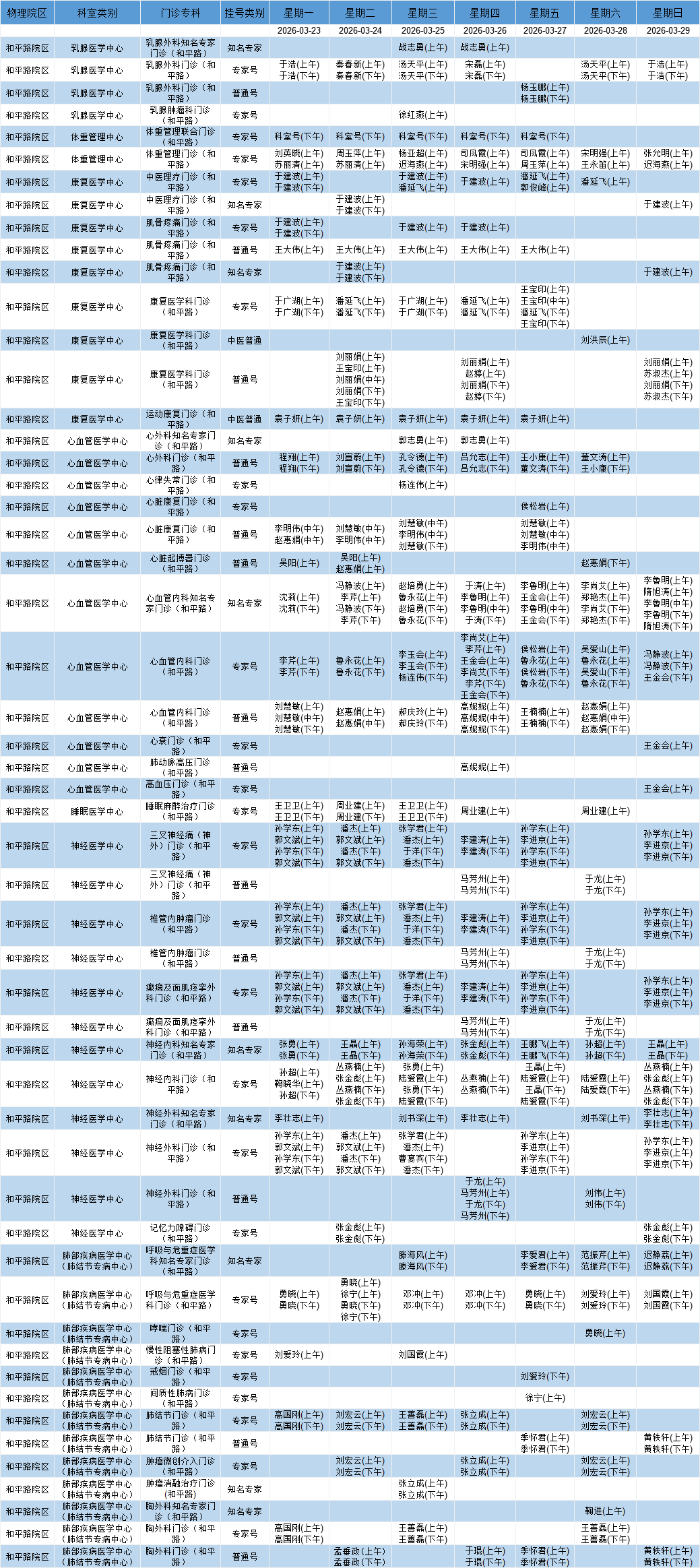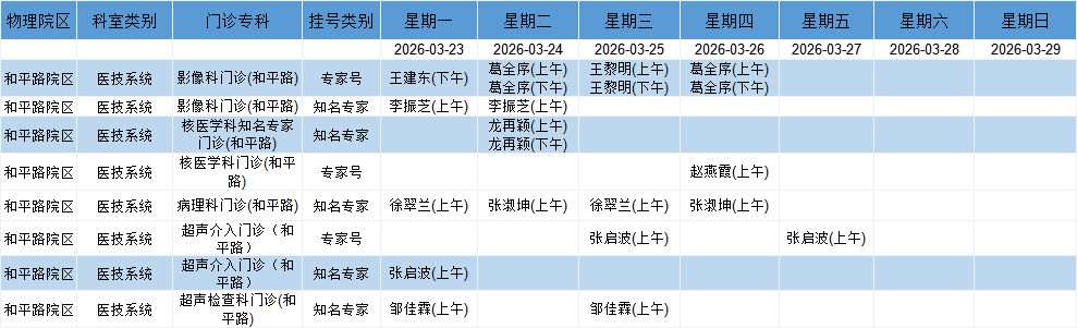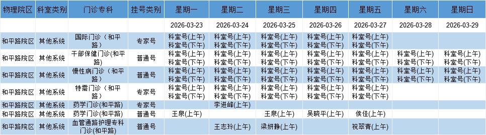 和平路院区医学中心门诊排班表