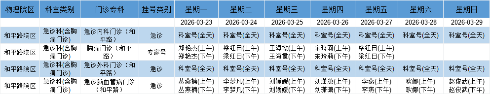 和平路院区急诊系统门诊排班表