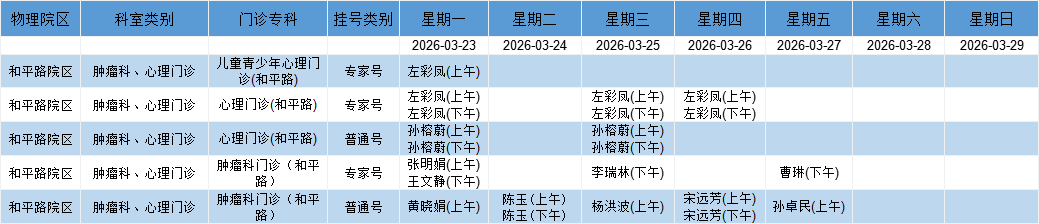 和平路院区肿瘤、心理门诊排班表